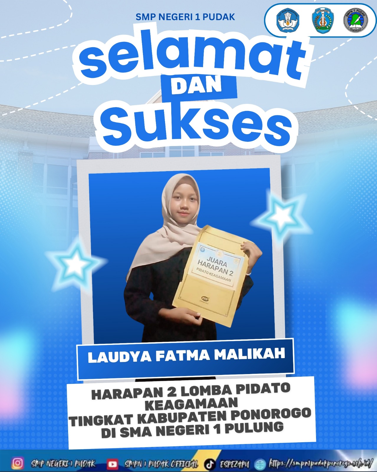 Selamat Datang di website resmi SMPN 1 Pudak Ponorogo. Website ini berisi tentang berbagai informasi terkait kegiatan yang telah dilaksanakan di sekolah.